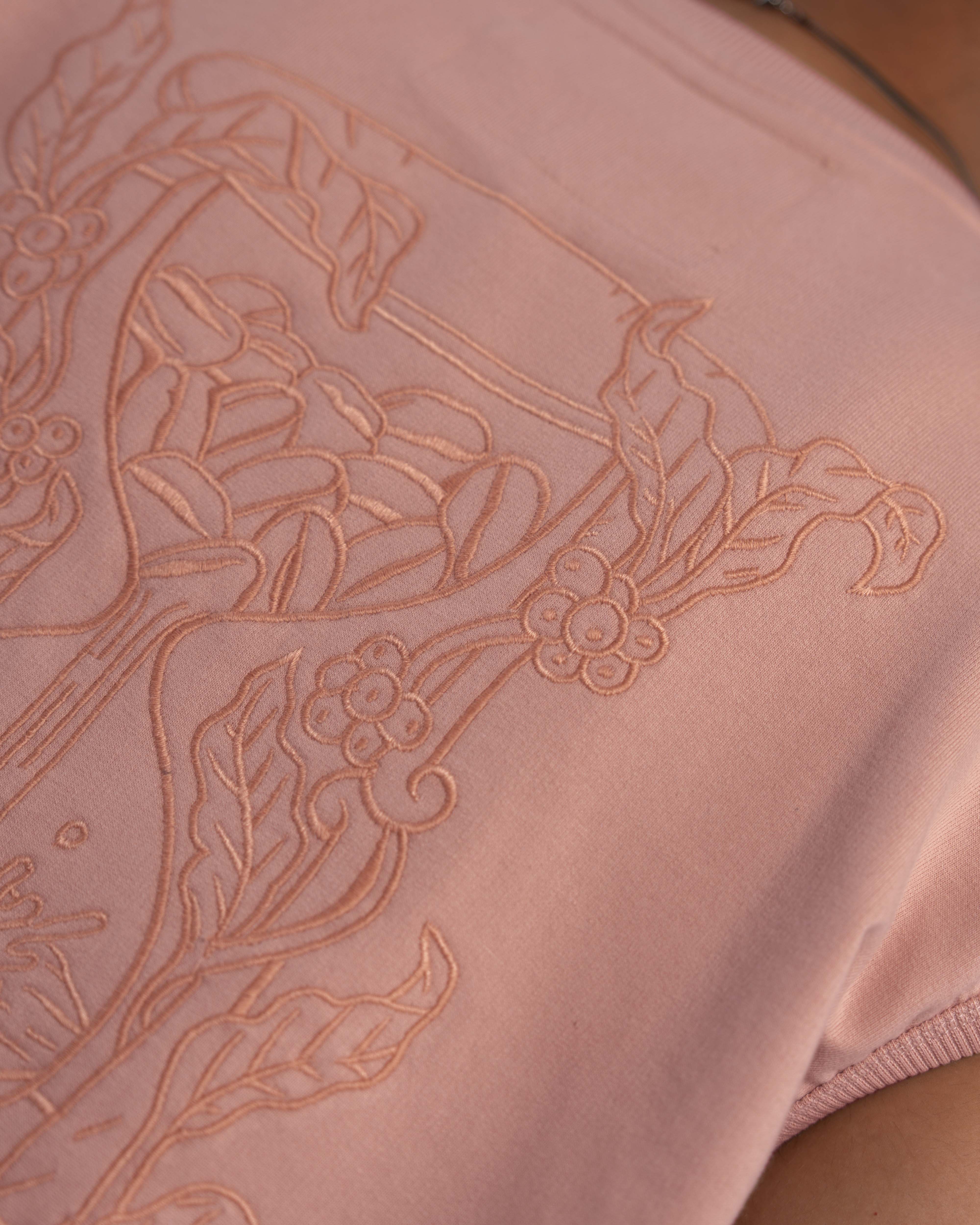 The front features an HD-printed “never running out” mantra for momentum. On the back, a tonal embroidered illustration of an hourglass filled with coffee beans reminding: Every cup we hold once lived in soil, soaked in rain, and bloomed in time.