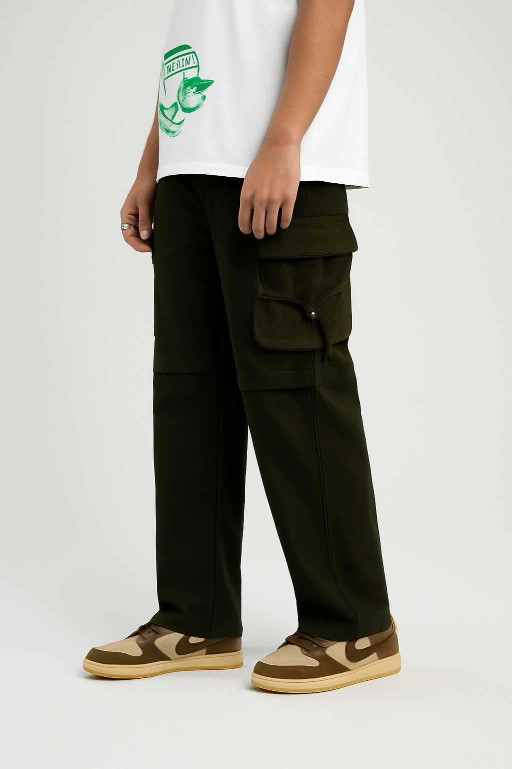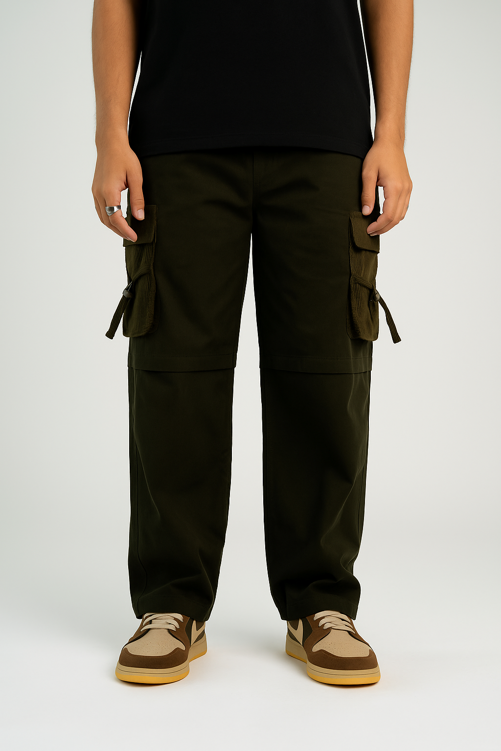 The unique touch of corduroy flaps, complete with functional pockets, adds a distinct retro flair, making these cargos stand out from the crowd.